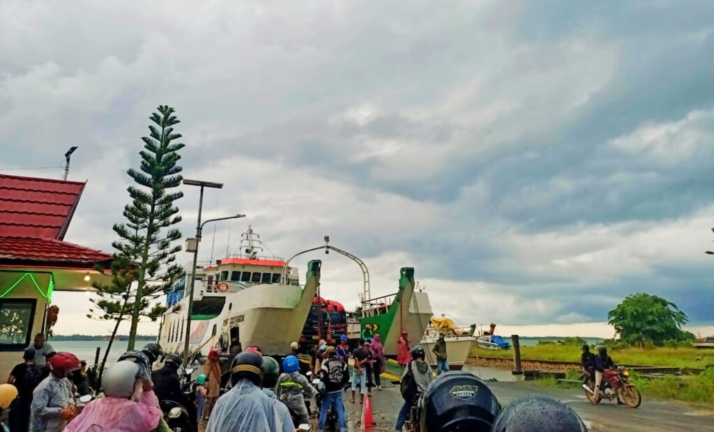 Antrian panjang pengguna jasa pelabuhan Ferry Stagen. Foto by adainfo.net