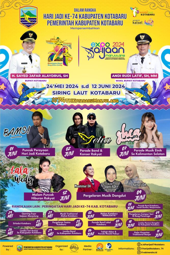 Berikut artis-artis yang akan menghibur masyarakat di Harjad ke- 74 Kabupaten Kotabaru.