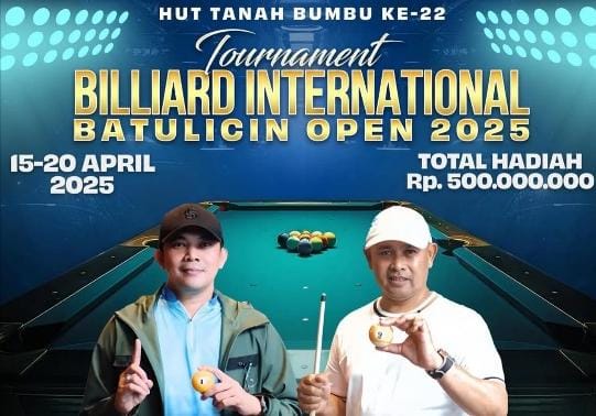 Menariknya, turnamen internasional Batulicin Open 2025 dijadwalkan digelar pada 15-20 April 2025 di Gimme Billiards dengan total hadiah mencapai Rp 500 juta.
