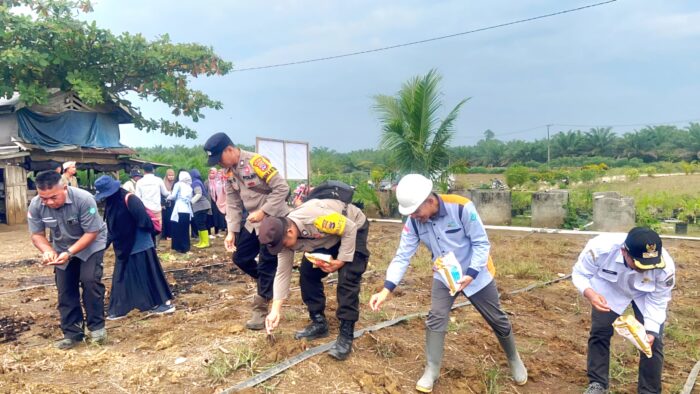 Kegiatan tanam dimulai sejak pagi dan dipimpin langsung oleh Kapolsek Kelumpang Barat, IPTU Hendrie Ade.