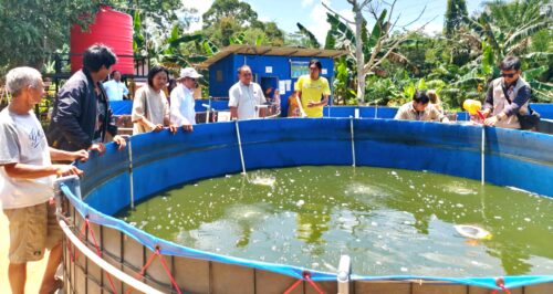 Petugas dari Dinas Perikanan Kotabaru pun turut hadir secara langsung serta memberikan materi dan arahan mengenai tata cara budidaya ikan nila sistem bioflok yang baik dan budidaya ikan haruan serta menjawab berbagai kendala yang dihadapi para pembudidaya.