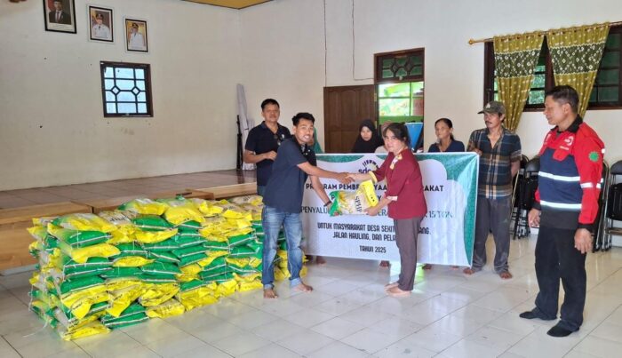 Perwakilan PT SDE menyerahkan bantuan beras di wilayah operasional perusahaan. Foto by Amirdi
