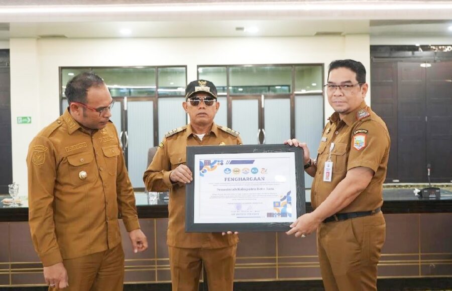 Piagam penghargaan tersebut lalu diserahkan Sekretaris Daerah Eka Sapruddin, kepada Bupati Kotabaru Muhammad Rusli dengan didampingi Wakil Bupati Syairi Mukhlis, di ruang kerja Bupati, Senin (06/10/25).