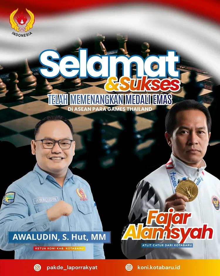 Atlet catur andalan Bumi Saijaan, Fajar Alamsyah, sukses menyumbangkan medali emas untuk kontingen Indonesia pada ajang ASEAN Para Games 2025 yang berlangsung di Thailand.