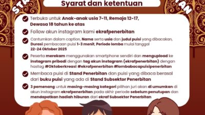 ADAINFO, KOTABARU – Memeriahkan bulan Oktober Kreasi, Disparpora Kotabaru menggelar Lomba Baca Puisi Stand Ekraf…